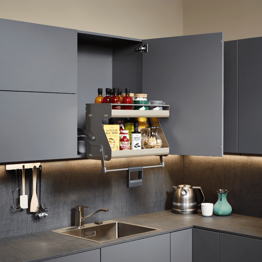 sequência de movimentos as suas mercearias deslizam para baixo de forma ergonómica.